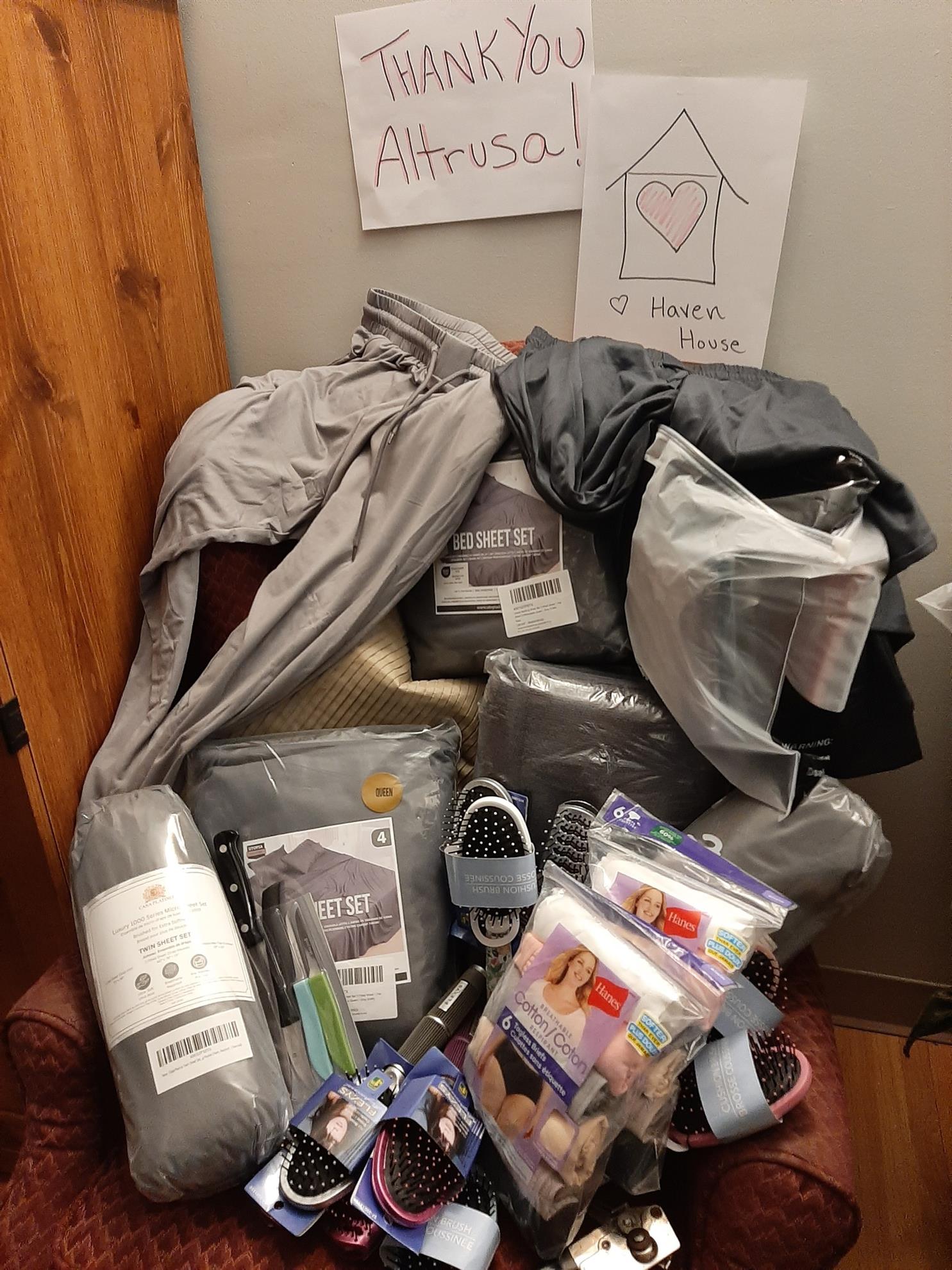 CARE ITEMS: Altrusans provide three emergency shelters with essentials such as toiletries, towels, underwear, bedding,, etc.